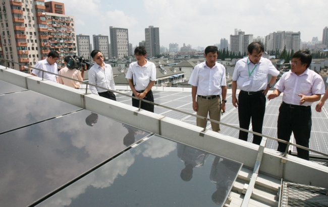 研讨会期间,与会人员参观了刚入驻设计一场的同济大学建筑设计研究院,察看了屋顶光伏系统、屋顶绿化和垂直绿化、雨水回收等多项节能措施。