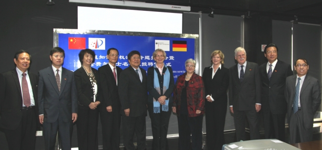 舍费尔女士感谢同济大学给了她这个荣誉,并表示会尽力为我校法学院和德国相关部门的交流与合作,为知识产权学科的发展做出自己的贡献。舍费尔女士还就中德知识产权领域的发展作了学术报告。