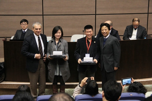 董琦欢迎新学员加入同济大学-米兰理工大学大师班的大家庭,并与大家分享了同济大学在国际合作办学与设计创新教育方面所取得的成就,希望学员们积极努力成为中国的设计大师,推动中国创意和设计产业的更高发展。Alessandro Balducci和Giuliano Noci表示,意大利教育部、米兰理工大学对该合作项目非常重视和支持,相信通过两所学校的携手努力会让新学员体验到一段卓越的学习经历。2010级学员陈丹凌、2011级学员萧爱彬分别代表两届学员表达了对于大师班的感悟体验以及未来期许。随后,两校领导分别为学员代表佩戴校徽。