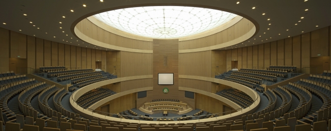 百米高的办公主楼直入云宵,正中央圆形的大会议厅宛若一颗闪耀的明珠,U字形建筑群寓意中非人民之手共同托起非洲未来……由中国政府援建、我校负责设计的非盟会议的永久会址——非盟会议中心,近日在非盟总部所在地埃塞俄比亚首都亚的斯亚贝巴市中心落成,巍然矗立在东非的蓝天下。该项目是胡锦涛主席于2006年11月在中非合作论坛北京峰会上宣布的中国政府加强对非合作八项举措之一,也是中国政府继坦赞铁路之后对非洲最大的援建项目。在落成典礼上,同济设计团队成为唯一受到表彰的突出贡献集体。