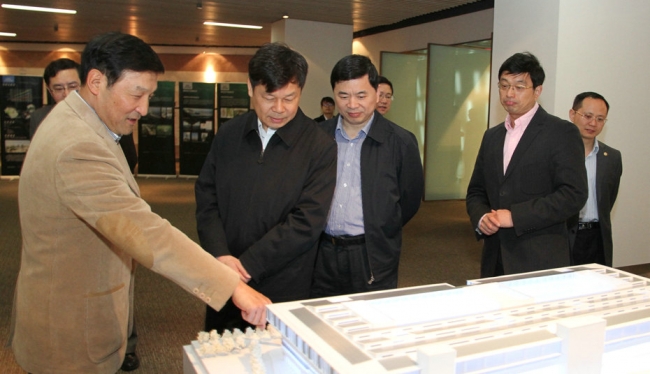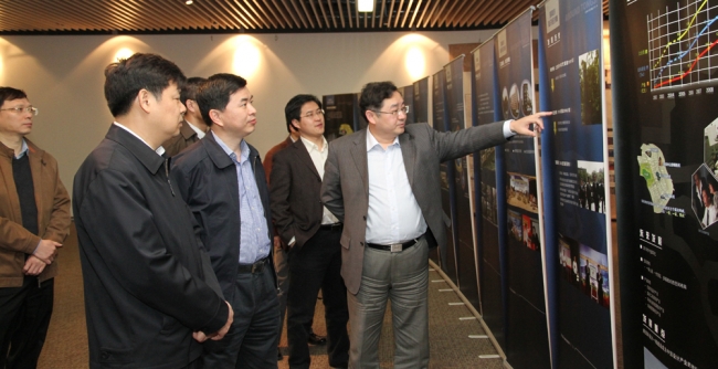 调研座谈会开始前,杜占元一行参观了我校建筑设计研究院办公楼太阳能光伏发电系统、环同济知识经济圈展览等。