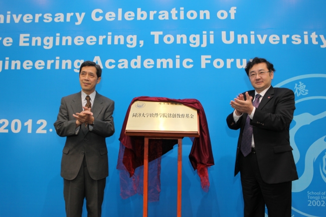 庆典上,还举行了“同济大学软件学院铭创教育基金”揭牌仪式,蒋昌俊副校长亲自为捐献者周兴铭院士颁发了证书。