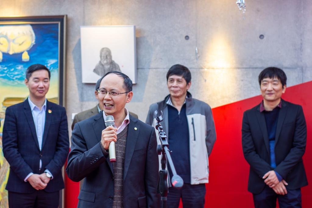 冯身洪在讲话中对赵文梁老师作品展的开幕表示了祝贺,并对赵文梁老师多年来所作出的贡献表示感谢。同时他还对艺术与传媒学院一直以来“深耕艺术以飨校园,勤力教学以育学子”所作出的努力和贡献表示高度赞赏和衷心感谢。