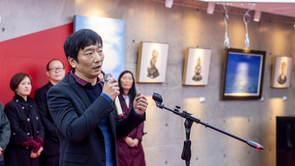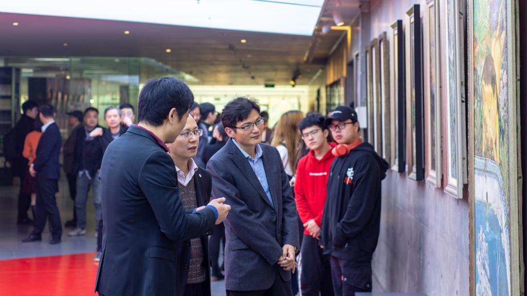 一面浓泼艳彩,一面轻墨雅韵,两种不同绘画材料却在我校艺术与传媒学院惟新馆得以融合一展、交相辉映。11月27日“浓彩轻韵”赵文梁作品展于我校嘉定校区惟新馆展览空间拉开序幕。校党委副书记、嘉定校区党工委书记冯身洪,北京理工大学工会副主席郝晓玲,我校工会、党委宣传部、党委教师工作部、学、研工部、艺术与传媒学院等部门相关负责人及兄弟学院有关负责人受邀出席了画展开幕仪式。各学院师生慕名而来,参览了本次作品展并聆听了赵文梁老师现场讲解其创作缘由和技法运用。