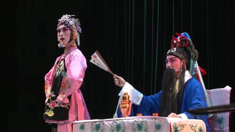 戏曲汇演在越剧《十八相送》中拉开序幕。演员们以饱满的热情、认真的表演给观众展现了丰富多样的节目,耳熟能详的越剧名段、清雅隽秀的昆曲故事、刚柔相济的京剧情节给热爱戏曲文化的观众们带来了一场精彩的视听盛宴。最后,场面宏大的《大登殿》将演出现场的气氛推至高潮。