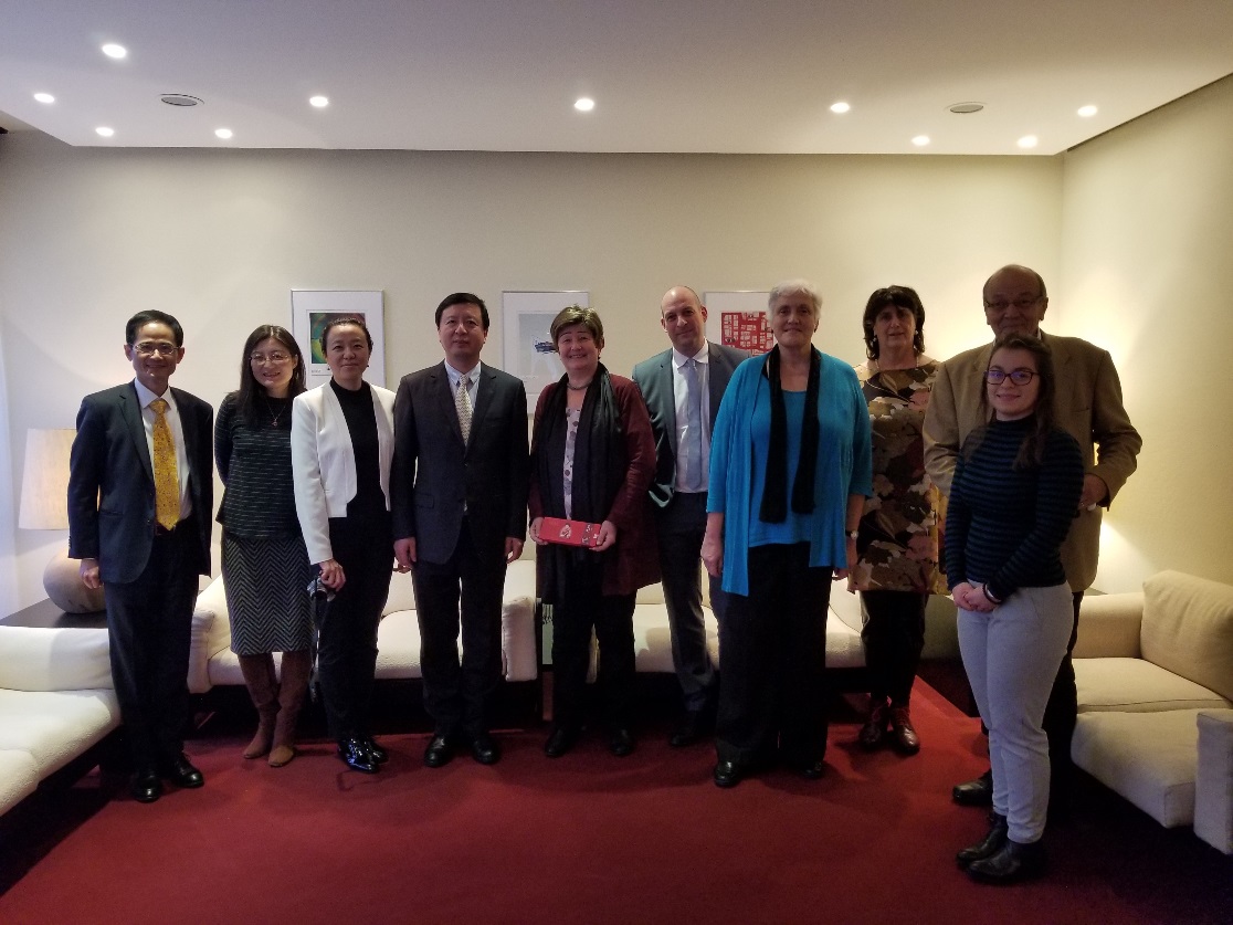 代表团在波恩受到了亚历山大·洪堡基金会秘书长Enno Aufderheide博士和德国联邦教育与研究部欧洲及国际教育与研究司司长Susanne Burger女士的接待,分别就科研人才的引进和培养以及中德工程学院2020年评估事宜交换了意见。在慕尼黑期间,代表团访问了中国驻慕尼黑总领事馆,与副总领事陈永军进行了交谈。陈永军对代表团的来访表示欢迎,并对同济大学为新馆落成所做出的贡献表示感谢。