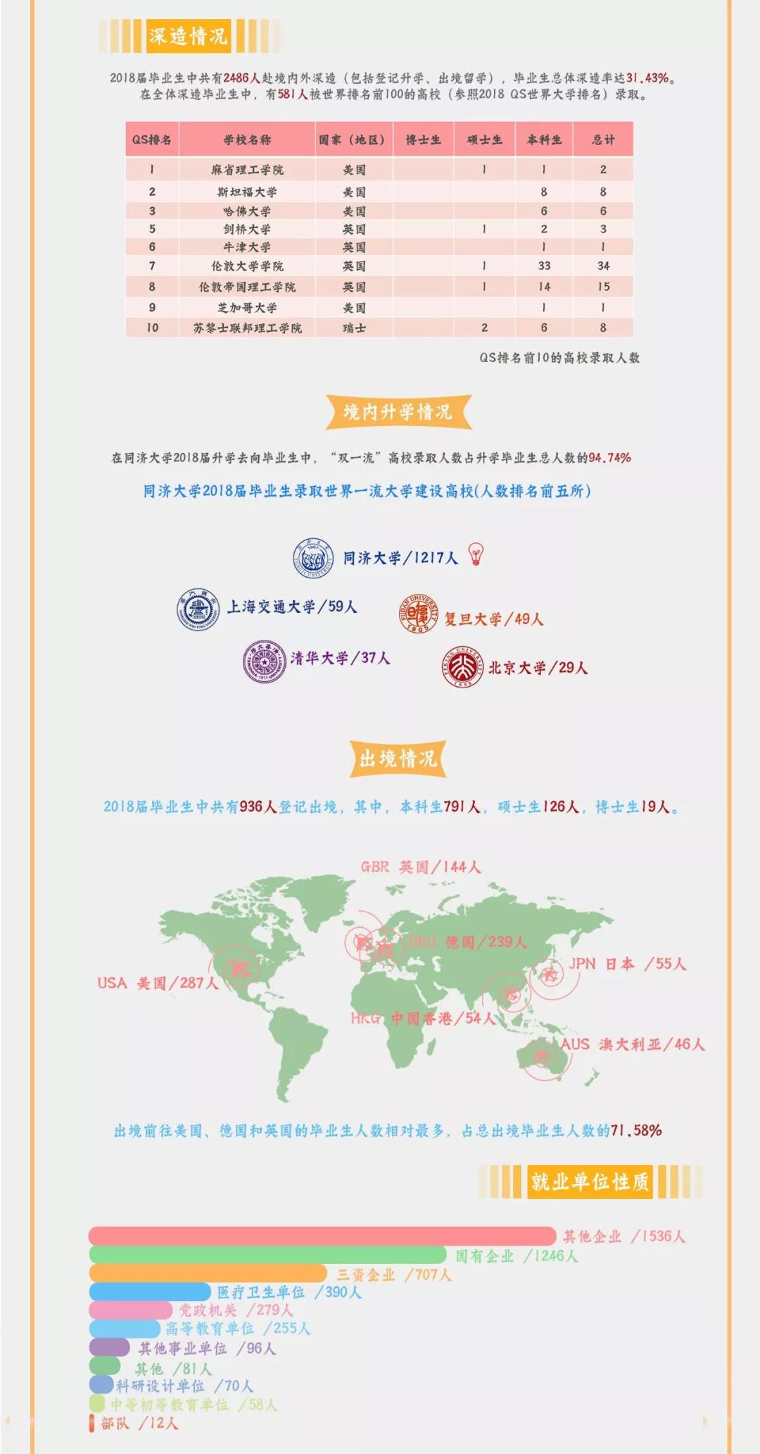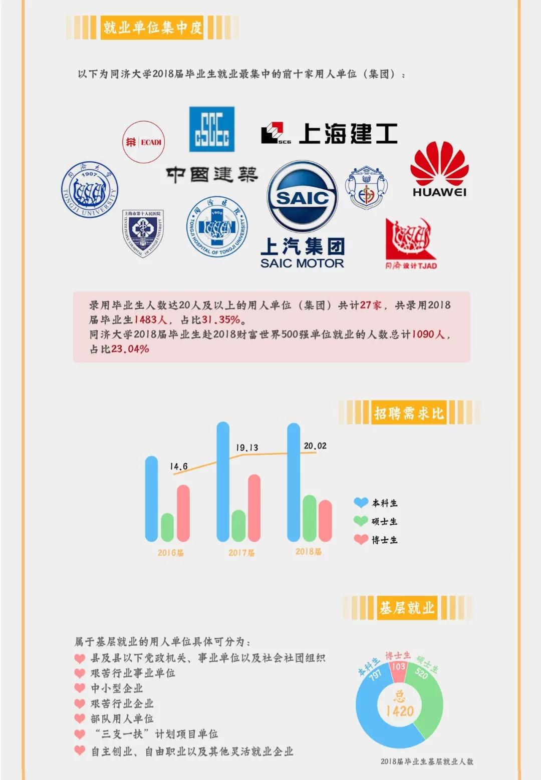 截止2018年11月20日,我校2018届毕业生总体就业率达99.20%,毕业生需求比为20.02:1;毕业生赴重点领域就业率达60.82%;用人单位对我校毕业生人才质量好评率超过99%……1月10日, 《同济大学2018年毕业生就业质量报告》发布,一个个刷新的数据,显现了近年来我校大力加强毕业生就业引导工程所产生的积极效应。