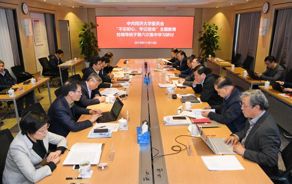 11月14日,校领导班子在四平路校区举行“不忘初心、牢记使命”主题教育第六次集中学习研讨。本次学习聚焦“奋发有为抓落实”,学习贯彻党的十九届四中全会精神,深入学习习近平总书记在2019年秋季学期中央党校(国家行政学院)中青年干部培训班开班式上的重要讲话,增强“四个意识”、坚定“四个自信”、做到“两个维护”,锻炼忠诚干净担当的政治品格,发扬斗争精神,增强斗争本领,把初心和使命落实到本职岗位上、一言一行中,在破除体制机制障碍、破解发展难题、促进学校发展等方面有所作为。校党委书记方守恩主持学习研讨并带头作交流发言,校长陈杰等校领导班子成员出席并逐一交流学习体会。