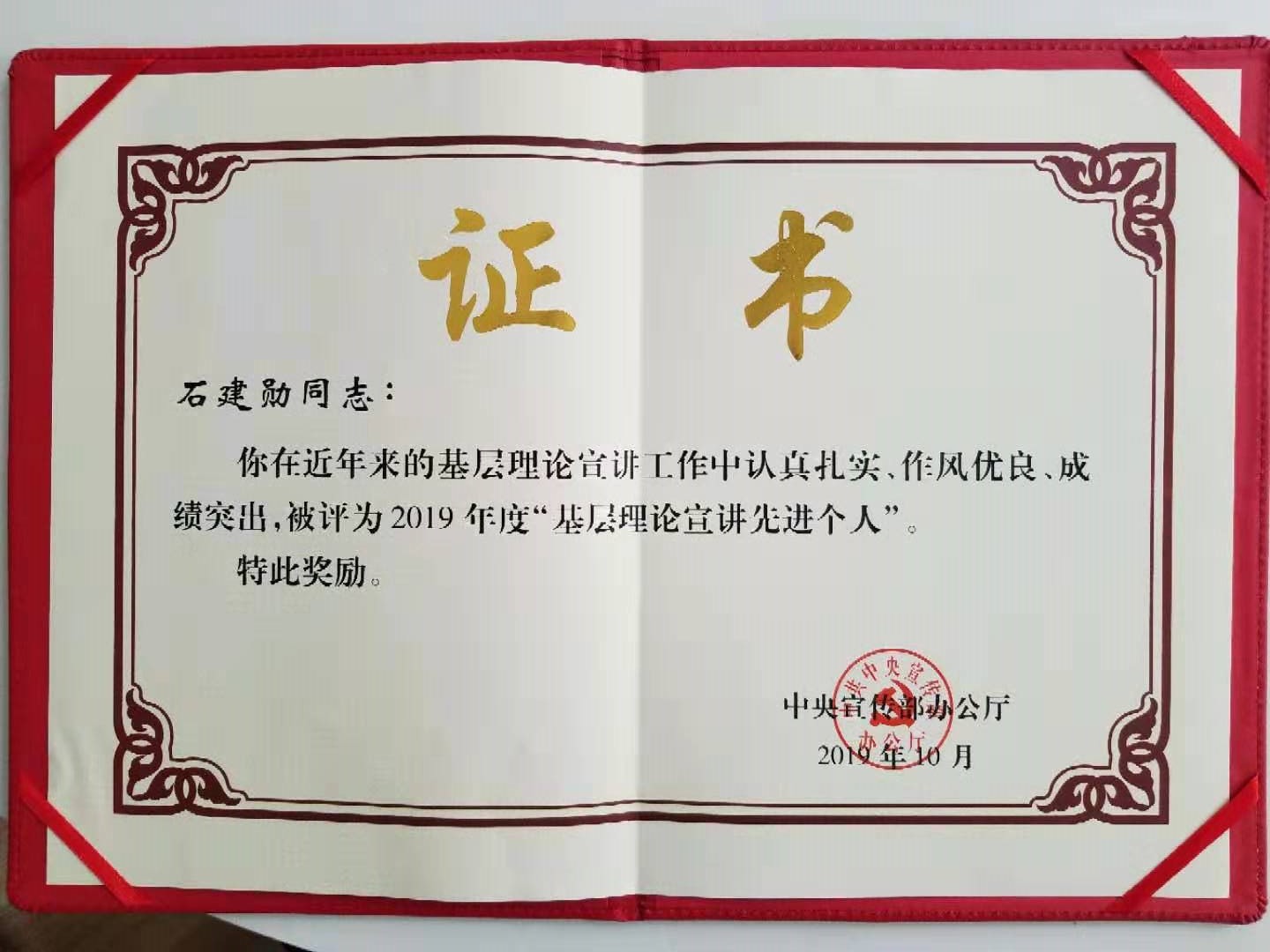 石建勋教授获评中宣部2019年度“基层理论宣讲先进个人”
