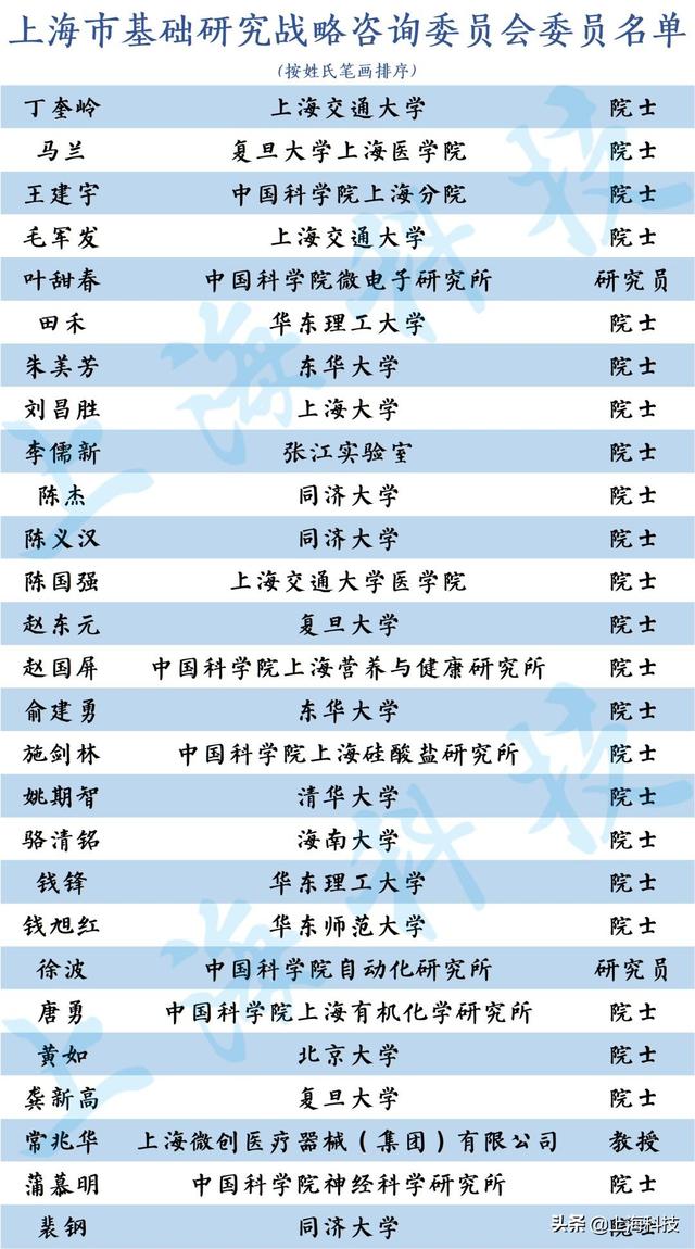 12月16日,上海市基础研究战略咨询委员会正式成立并召开第一次全体会议。首届上海市基础研究战略咨询委员会由27位来自相关高校、研究所和企业的院士专家组成,同济大学陈杰、裴钢、陈义汉三位院士名列其中。