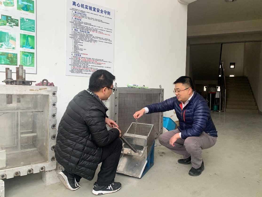 黄雨等正在调试地质灾害防治物理模拟试验装置