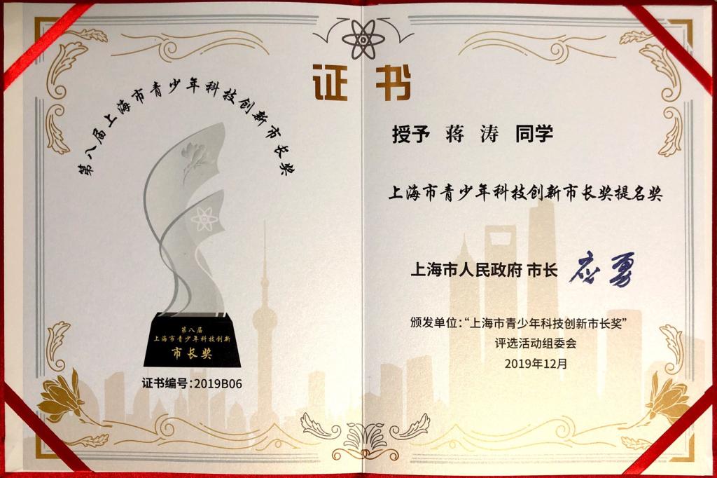 2位同济学子获第八届“上海市青少年科技创新市长奖”提名奖
