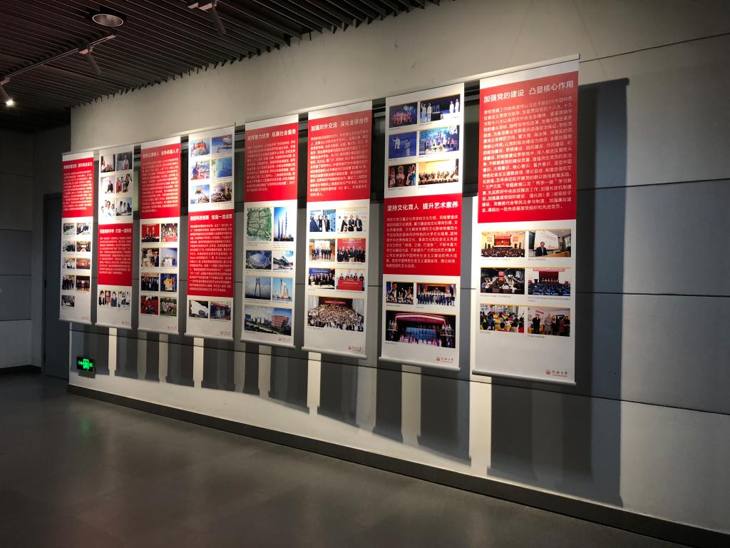 除了公共空间的文化建设外,各类艺术展也纷纷进驻楼宇。“刚柔于同 艺韵在济”教师绘画作品展、“怀袖雅物”扇面画艺术展、“四时花开”——妙空如如书画展、“青与蓝·二”绘画作品展、“咫尺丹青”——周德宽扇面书画作品展、“浓墨重彩绘华章”教工书画展、“砥砺前行七十载 奋斗逐梦新时代”新中国轨道交通图片展……这些展览让师生们时时浸润在艺术氛围中,性情得到陶冶。