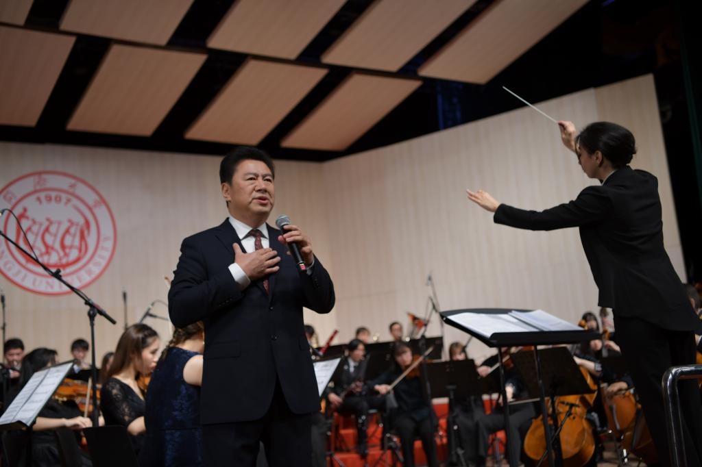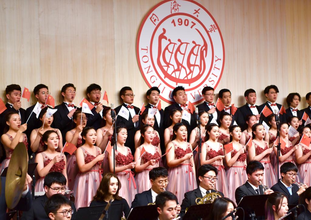 师生合唱《不忘初心》《歌唱我的祖国》,艺术与传媒学院声乐教授李巍的男高音独唱《祖国,慈祥的母亲》,声乐教师王伊达的女高音独唱《爱我中华》,深情的演唱、动听的歌声,唱出了同济师生对党、对祖国的赤诚之爱。热烈的掌声一次次响起。