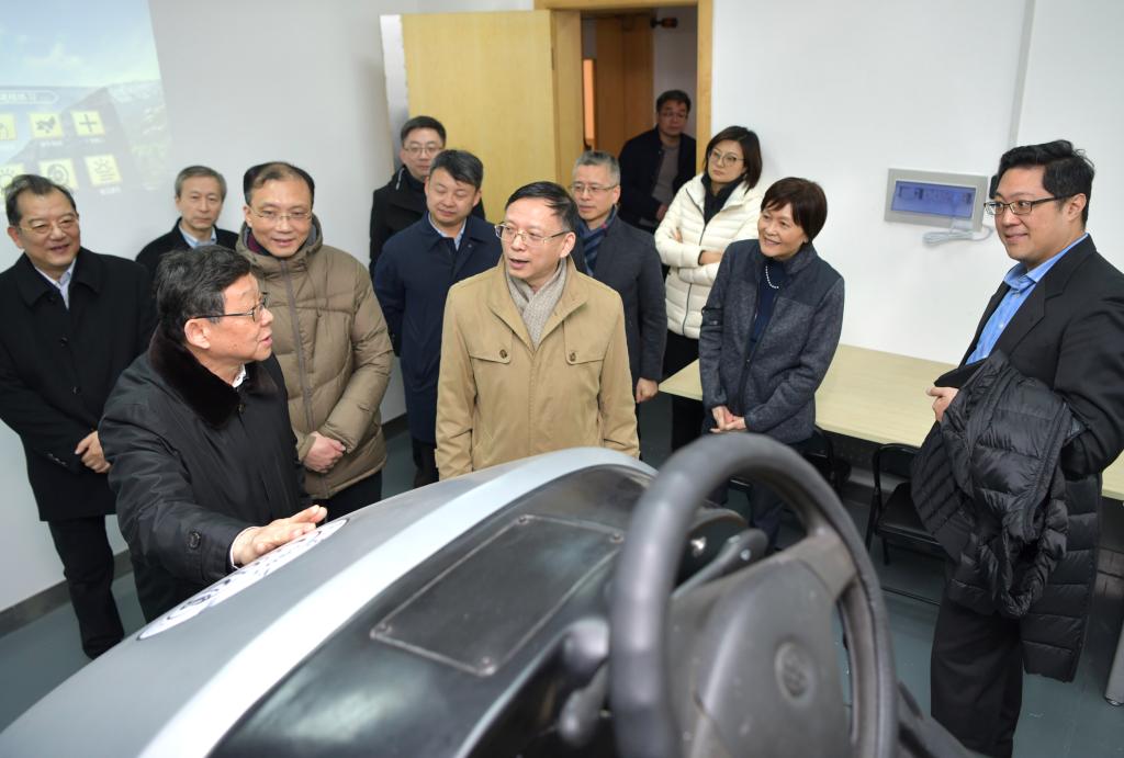 方守恩、雷星晖等陪同徐小春、陈德铭一行先后参观了嘉定校区图书馆、艺术与传媒学院、汽车学院、交通运输工程学院。徐小春、陈德铭等一行饶有兴趣地边参观边询问,了解动漫设计、浸入式观影、汽车风洞科研、模拟驾驶等情况。