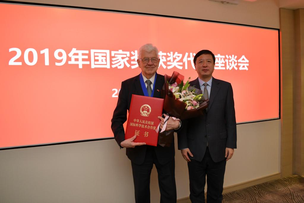1月13日,在我校国家科学技术奖获奖者代表座谈会上,同济讲座教授Herbert Mang收到科技参赞雷风云转交的中华人民共和国驻奥地利共和国大使李晓驷的贺信,祝贺他荣获2019年度国际科学技术合作奖,对他为中奥两国科技合作作出的突出贡献表示感谢,希望Mang教授继续为两国未来的科技合作贡献力量。