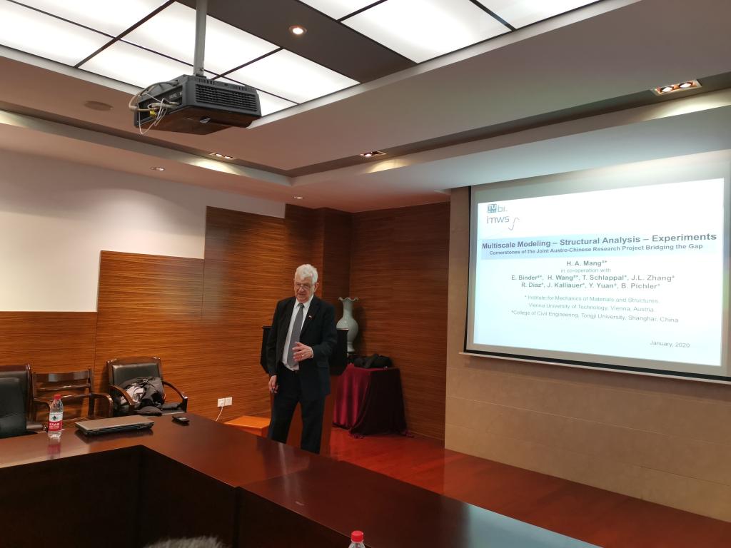 会后,Mang教授为我校土木工程学院师生作了学术报告,并与袁勇教授学科组展开讨论交流。Mang教授1月10日出席了在北京召开的2019年度国家科学技术奖励大会,之后来到我校继续开展学术交流合作。Mang教授是首位获得中华人民共和国国际科学技术合作奖的奥地利科学家。