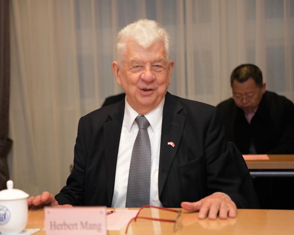 Mang教授首先向李晓驷大使发来贺信表示感谢,他感谢这些年来中国驻奥使馆、同济大学及土木工程学院给予他的支持与帮助。他说,近40年来,他非常高兴地见证了中国科技事业的发展进步。作为一名土木工程师,他一直对中国在关键基础设施的独特设计方面很着迷,比如在地质条件复杂、抗震挑战大的地区设计大跨度桥梁和隧道,这类结构在奥地利土木工程中也发挥了重要作用,它们的安全和经济设计需要付出巨大的科学努力。他表示,他与中国在土木工程领域合作的近40年间,重要的合作成就之一就是两国都为学术界和工业界培养了一批训练有素、前途无量的青年人才。展望未来,他表示,相信中奥两国科研人员将在相互尊重的基础上,进一步加强和引领中奥两国乃至世界的科研合作。
