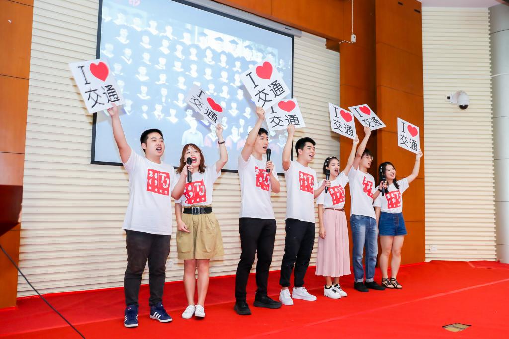 在交通运输工程学院2018届本科生毕业典礼上,张桁嘉(左三)与学生合唱《我们都是追梦人》。