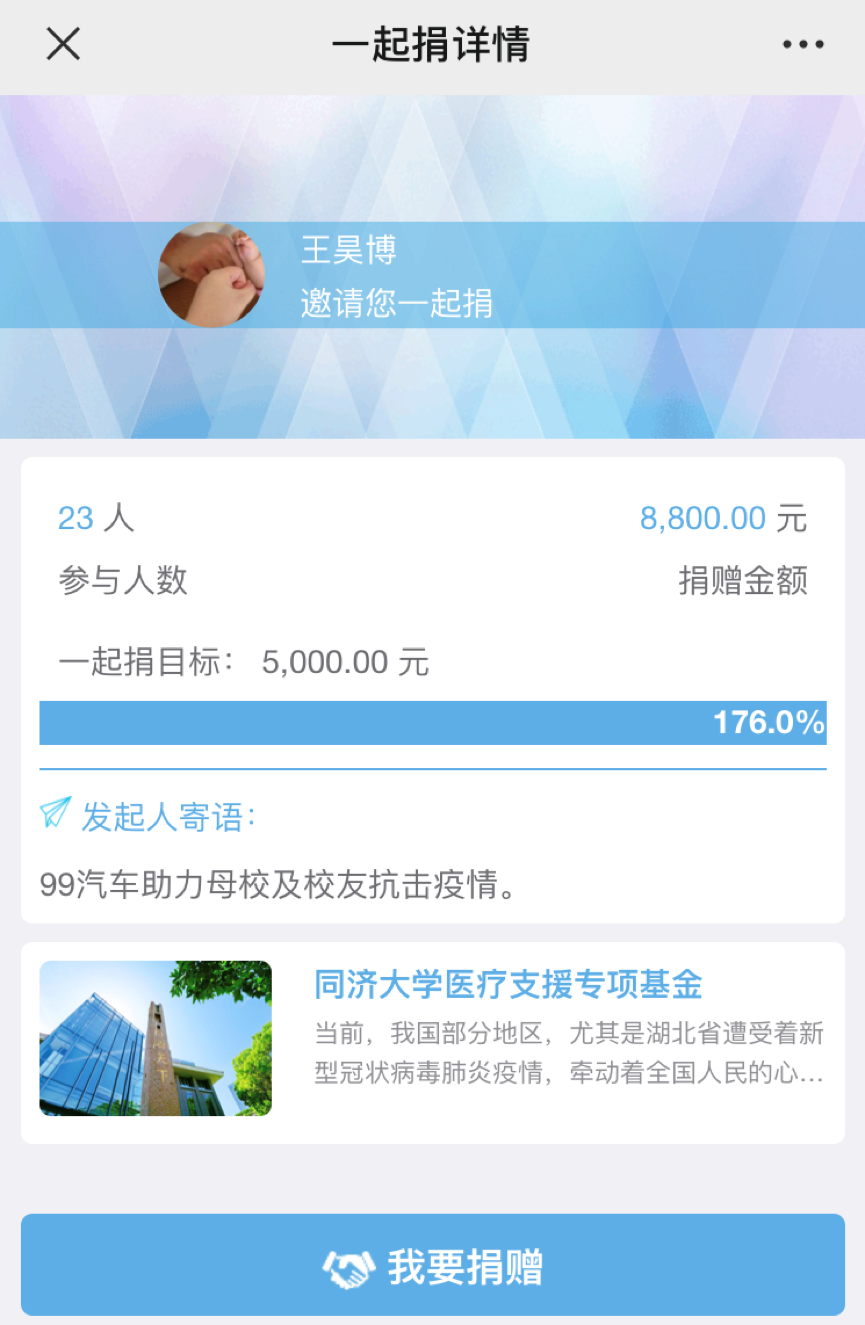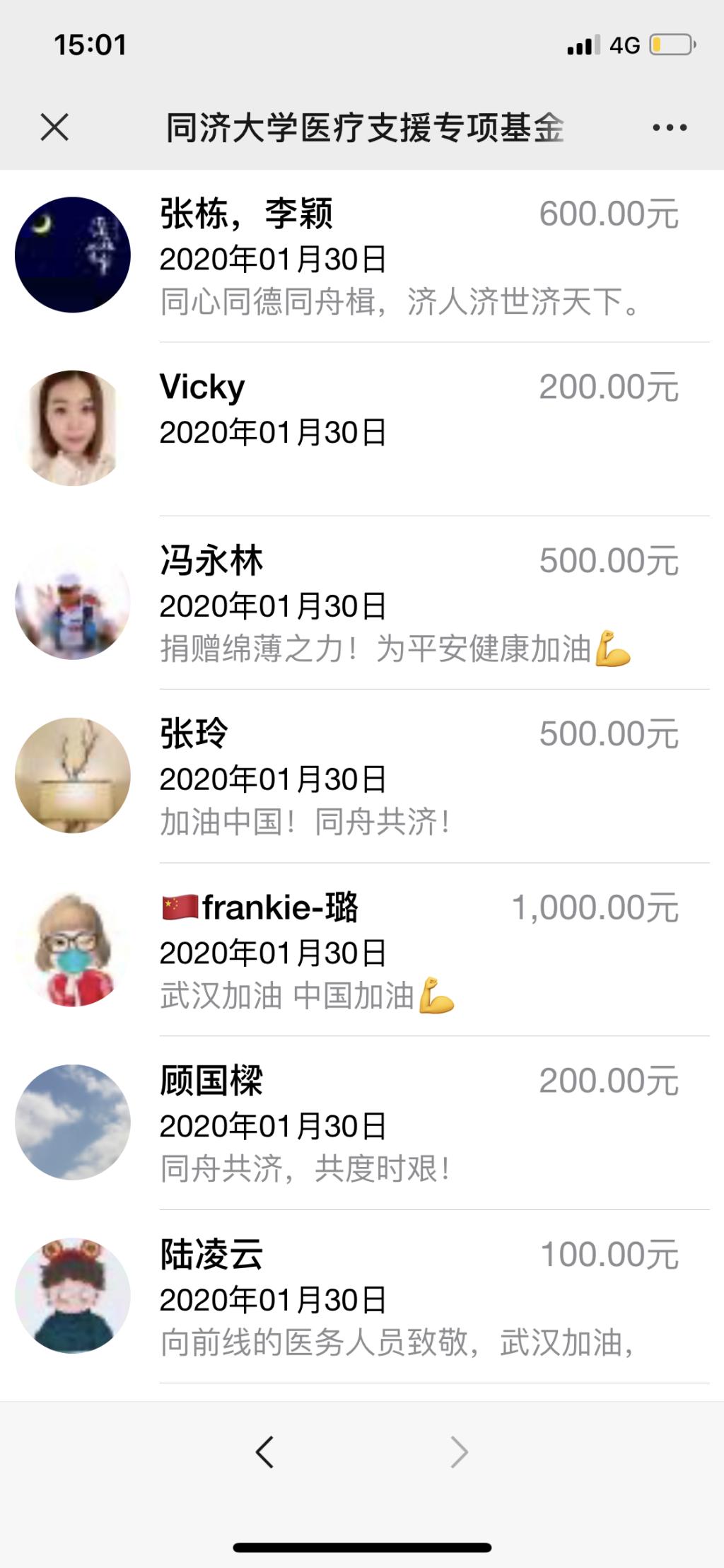 “同济同济,同舟共济!”“同舟共济,共克时艰!”“同心同德同舟楫,济人济事济天下!”“武汉加油!中国加油!”……海内外校友纷纷在捐赠平台真情留言,表达与祖国人民同舟共济、共克时艰的坚定决心与真挚感怀。(新闻中心、校友会)