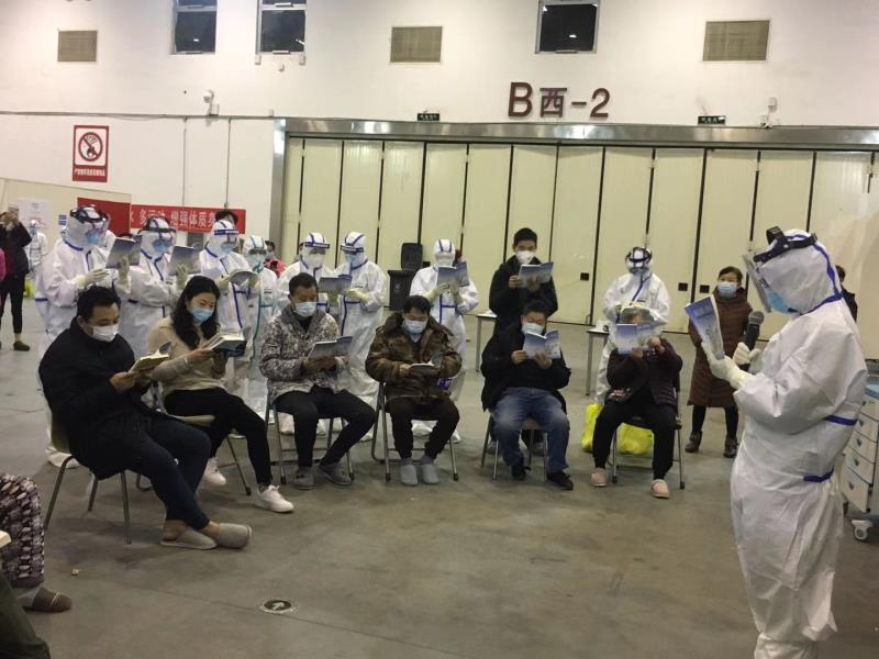 “这17位患者分布在武汉客厅方舱医院的各个区。”华晶介绍,我首诊的三位患者情况各不相同。印象深刻的有两位,其中一位,1月14日就开始头晕,但除此没有其他任何症状。他在医院检查,CT未见异常,接治医生很警觉查了核酸,结果核酸结果呈阳性。他便开始自我隔离,但他一直处于似病非病的状态,直到7号经过筛选他符合入住方舱医院的条件,就成了第一批“方舱居民”。我接诊时,和他说“你发病的时间够长的!”他说:“这不是进来了嘛!没事,你们该怎么治就怎么治,需要待多久就待多久,一切听你们的。”说完,对我咧嘴一笑。我交班时,就发现他与隔壁左右、远远近近就熟络了,谈天说地哈哈笑笑,快乐情绪迅速感染了很多人。