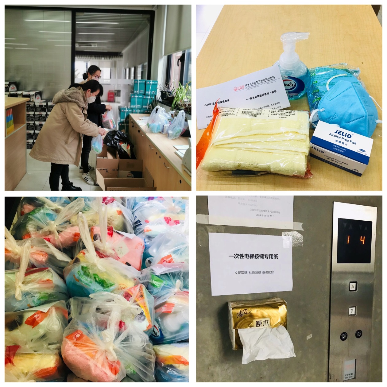 为做好疫情防控物资保障,学院党委利用学校组织部下拨的专项党费及学院配套党费支持物资采购,学院院办、党办积极挖掘物资采购渠道,最终为值班教师和留校学生采购到了合格的口罩、消毒棉片、洗手液等紧缺防疫物资。为了减少人员接触,避免感染,学院研究生总支书记唐育虹老师和学院办公室副主任叶青老师两人主动承担起了全部的物资运送、装袋和发放工作。