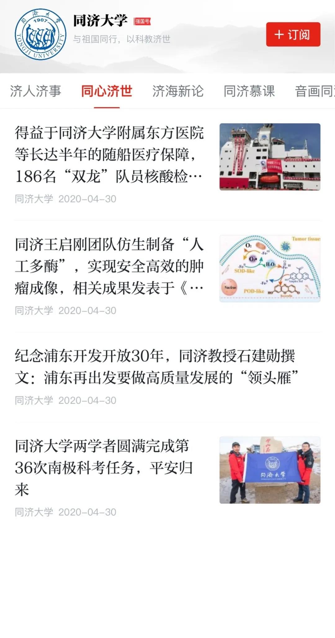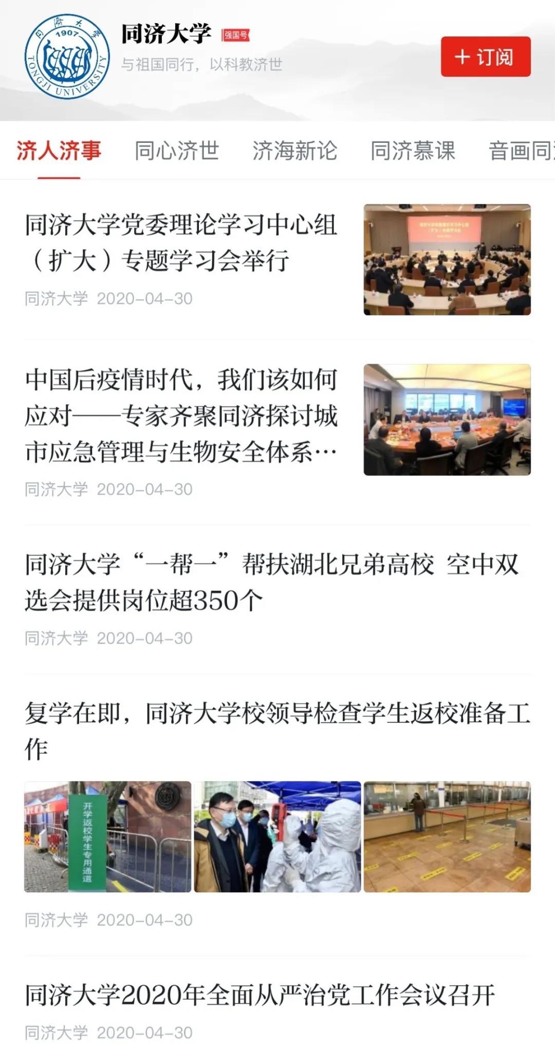 4月30日,“同济大学”学习强国号在中宣部学习平台“学习强国”上线。该学习强国号是反映同济大学深入学习宣传贯彻习近平新时代中国特色社会主义思想、落实立德树人根本任务的重要载体,是全面展示同济大学深入推进扎根中国大地建设世界一流大学和弘扬正能量、讲好同济故事的全媒体传播平台。