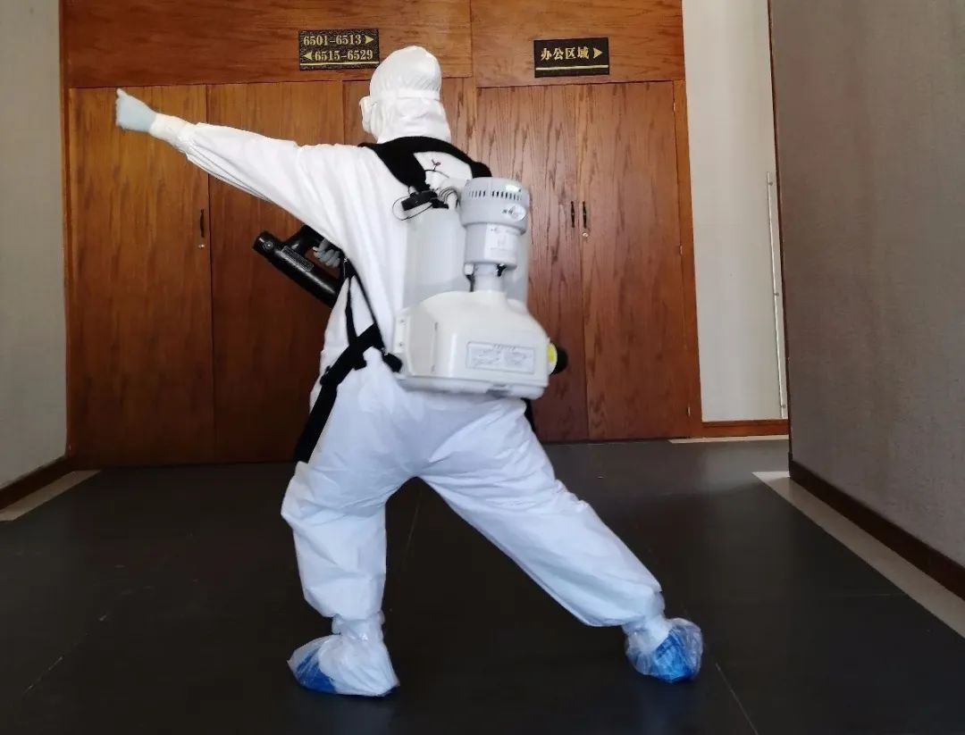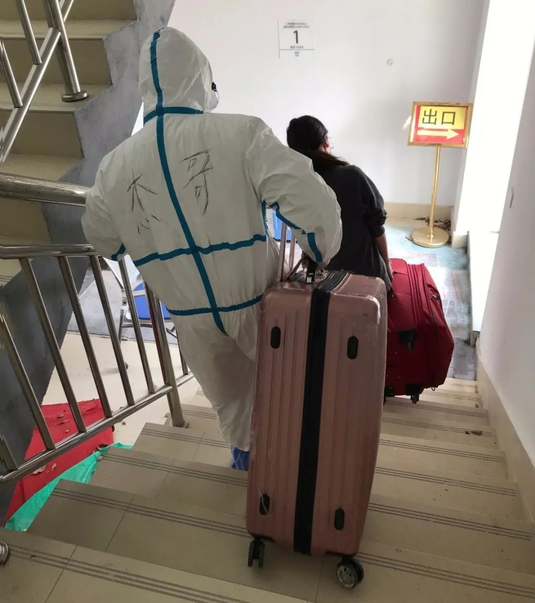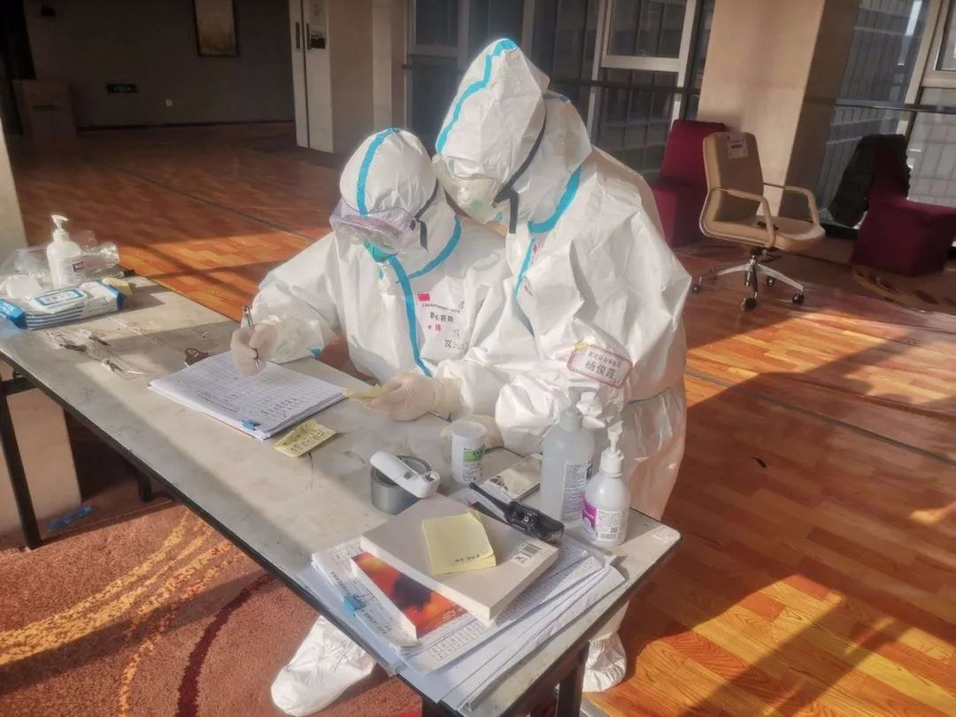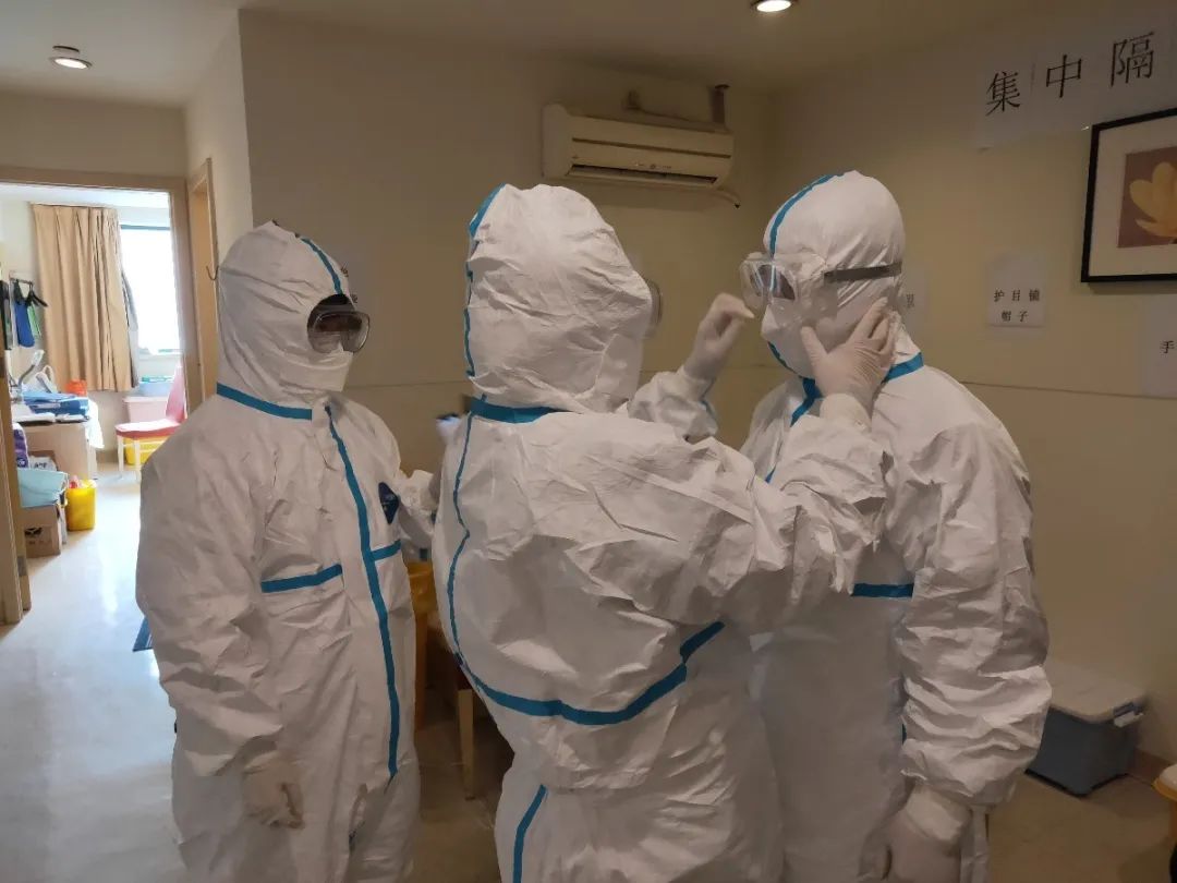 附属金杨社区卫生服务中心的梁振蛟医生是在38日抵达隔离点这一战场的,和消毒组的同仁们一起承担着大量消杀保洁的任务。穿着厚厚的防护服,行动非常不便,即便是经常运动的梁医生没多久也已经是汗流浃背,里层全部湿透,浑身虚脱。当他完成第一阶段26天隔离点的任务仅仅5天后二进点位,继续第二轮隔离点的工作。面对疫情,大家都打起十二分的精神,努力发挥着自身的专业特长。