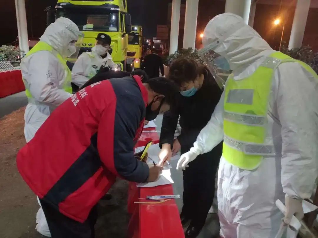 35日上午8点,附属淞南镇社区卫生服务中心(筹)为期48小时的第二轮入沪道口卫生检疫工作顺利完成。随着企业复工,道口的车流量、人流量都大幅增加,共计筛查车辆5583车次,返沪人员8348人次。您好,请先扫码填报信息,通行速度就能快一点……”,为了提高通行速度,每班安排2名工作人员在数米之外的前置点,提醒入户车辆通过健康云”APP填报相关信息。您好,请停车,配合测温,请出示二维码8小时重复着最简单的话语,重复着最简单的动作。深夜的道口值守任务仍旧艰巨,来往车辆还是络绎不绝。冷冽的寒风已然穿透了防护服,让他们打起了哆嗦,但是十足的干劲和满怀着的一忱热血仿佛就能照亮这漆黑冰凉的夜!一遍遍重复的礼貌问候,一句句耐心的指导与问询,一声声略带着疲惫的谢谢,交织成了这座城市中一个小小防疫检查道口的回旋曲。两天的检疫工作虽然艰苦,但是他们齐心协力,逢车必检,逢人必测,坚决守住一道关,护好一城人。