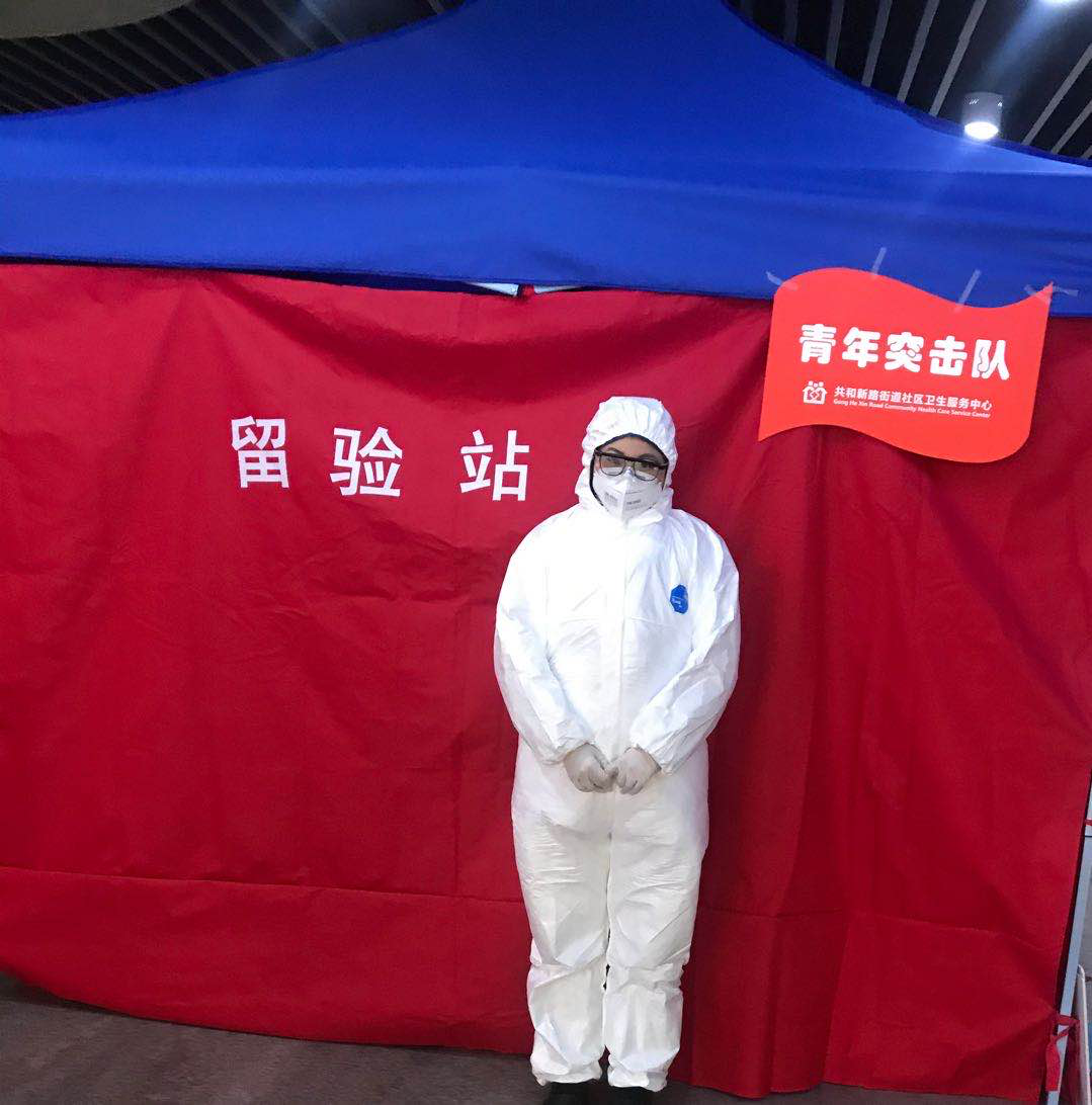 126日年初二,附属定海社区卫生服务中心(筹)、医学院2018级全科医学硕士研究生(在读)张慧医生在病房值班时收到通知——做好准备随时待命去区卫生健康委员会协助疫情防控工作。作为一名有着全科门诊管理经验的医生,她主动请缨,走向疫情防控的第一线,负责附属上海市肺科医院的发热门诊驻点工作。她带着使命和责任,孜孜不倦地协调着诊治流程的各个环节,关爱每一位就诊患者,指导他们做好防护,解除他们对于疾病的过度恐慌,还和其他医护们一起学习、探讨疾病的最新进展。