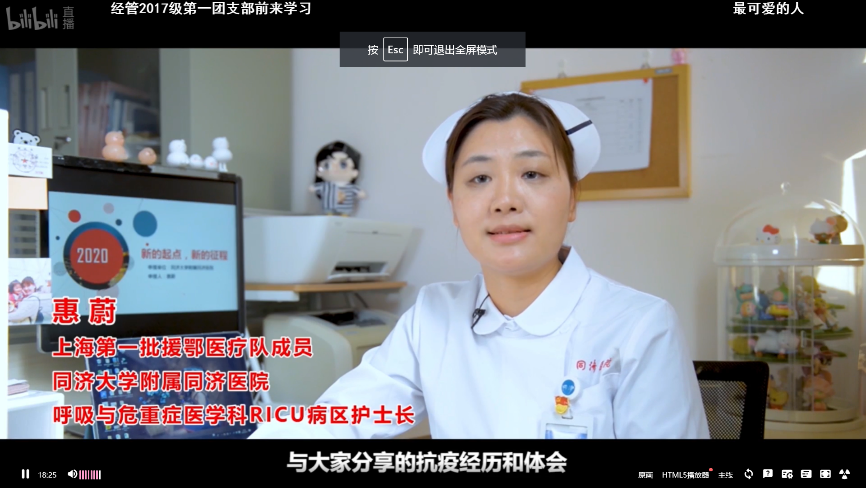 为弘扬五四精神,大力宣传在抗击疫情中做出突出贡献的青年典型,引导和激励我校广大青年锐意进取、开拓奉献,由校团委主办的“奋斗的我,最美的国”同济大学纪念五四运动101周年线上主题团课5月3日15时在B站直播间开讲。2020年同济青年五四奖章获得者、援鄂医护青年代表线上为同学们讲述了他们逆行抗疫的故事,生动诠释了同济青年的责任与担当。我校全体团干部、团支书、广大团员青年共七千余人在线观看直播,共同聆听这堂生动的爱国主义教育大课。