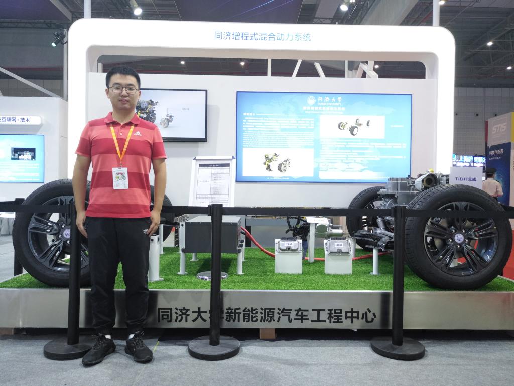 他活跃在汽车学院科技创新的多个战场,主动投身新能源汽车的研发事业中来。这是同济大学自主研发的一款增程式混合动力汽车,其中也有倪润宇的一份贡献。从前期的仿真分析及策略开发、电气集成设计,到零部件选型,再到整车试制,历经近2年的奋战,倪润宇全程参与了整车开发工作。该原型车参展工博会,获“最具人气路演项目奖”。