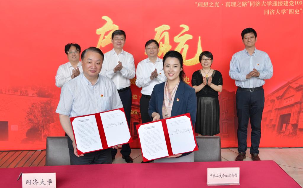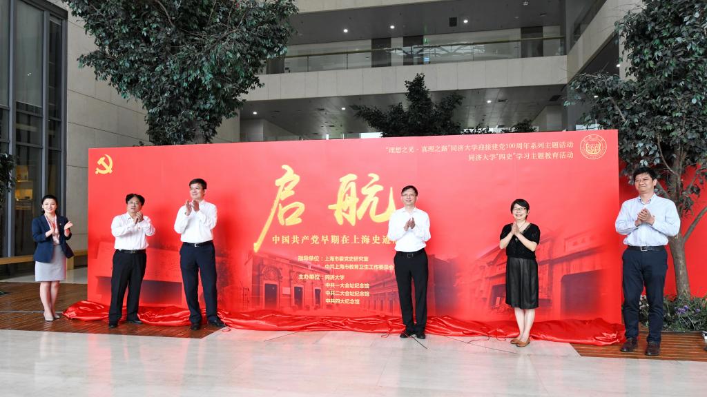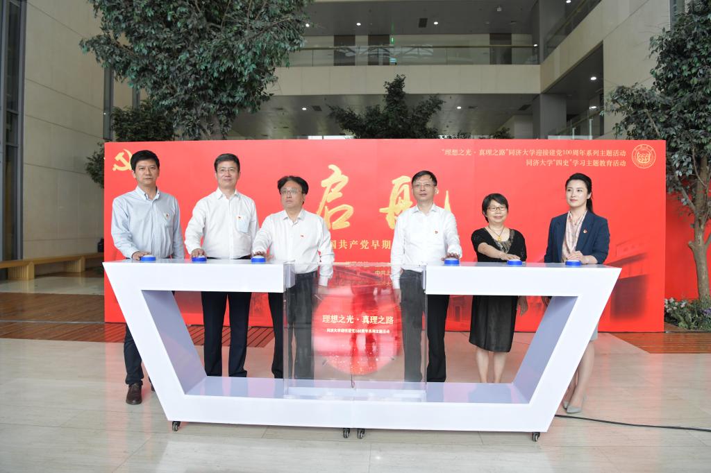 6月24日,在上海市委党史研究室、上海市教卫工作党委指导下,由我校联合中共一大会址纪念馆、中共二大会址纪念馆、中共四大纪念馆共同举办的《启航——中国共产党早期在上海史迹展》在四平路校区衷和楼大厅揭幕。此次展览系首次将一大会址纪念馆、二大会址纪念馆、四大纪念馆的展览组合在一起进行展出,集中展现了中国共产党早期在上海的奋斗历程。该展览也拉开了“理想之光·真理之路”同济大学迎接建党100周年系列主题活动的序幕。这也是学校党委中心组的一次学习活动。