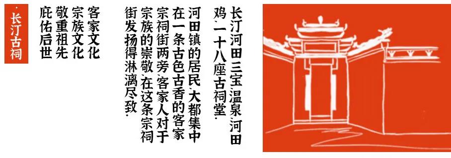 在实地考察当地农特产品后,确定了将龙岩长汀河田鸡为目标,分为熟食和冰鲜两个系列,进行包装设计。团队从历史和文化背景出发,对长汀河田鸡的产地环境、历史渊源、相关食品的材料准备、制作工序进行全面而细致的调查和总结。长汀河田鸡素有“世界五大名鸡”“名贵珍禽”之美誉,其脂肪适宜,肉质细嫩,含有丰富蛋白质。唐开元年间河田鸡被选送到长安,曾被誉为斗鸡之雄。除河田鸡外,龙岩长汀河田镇还有一宝,那就是一十八座古祠堂。