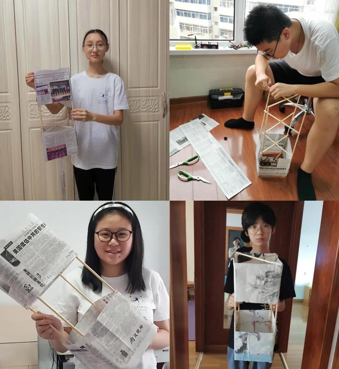 航空航天与力学学院沈海军教授带领营员们在线上共同参观了同济大学微小飞行器实验室,并介绍NASA(美国航空航天局)的风筝设计软件KITE modeler ,引导营员使用实验器材同步制作“盒式风筝”,化身手工达人。天津市营员单小骞说:“实验室里面的展品都是在校学生自己做出来的,这让我在惊异于同济师生的动手能力的同时,更加感叹于大自然的创造力。”