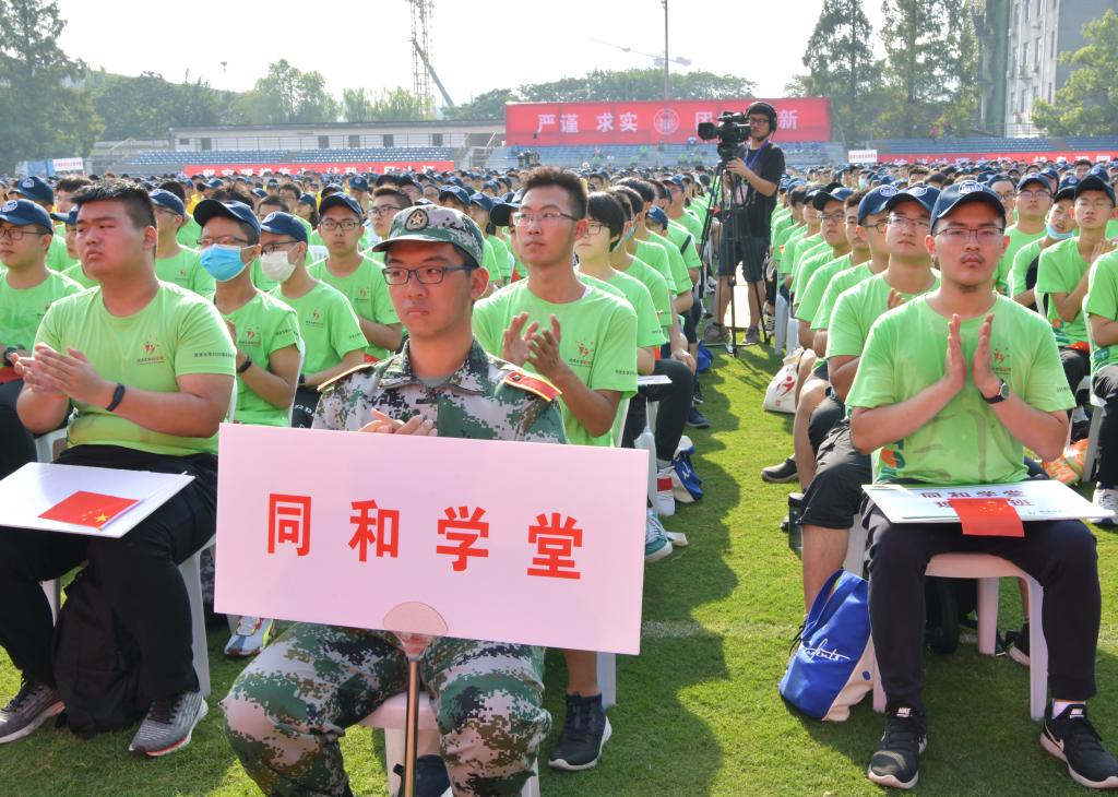 最后,校领导与全体新生齐声高唱一曲《歌唱祖国》,开学典礼在激昂的歌声中落下帷幕。