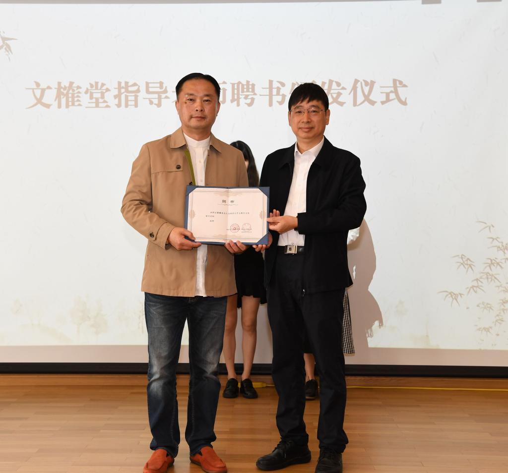 当天,方亚芬、魏立中、黄震良还受聘为文榷堂指导教师,吴广明分别为他们颁发聘书。