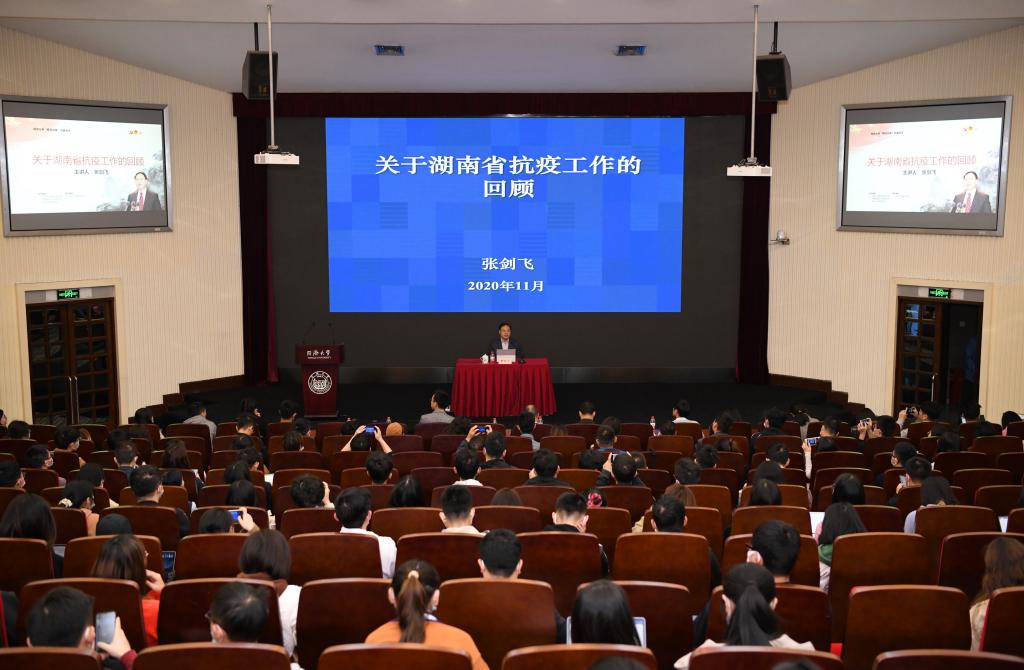 张剑飞校友做客“枫林讲堂”,作《关于湖南省抗疫工作的回顾》主题报告