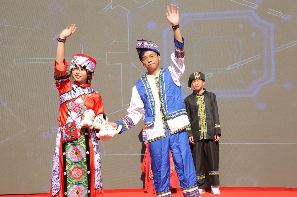 闭幕式分为“文化相聚”“珠歌翠舞”“华夏美食”“游戏互动”“惊喜抽奖”五个板块,以舞龙舞狮表演开场。本次嘉年华共有汉族、壮族、藏族、维吾尔族、哈萨克族、蒙古族、朝鲜族、回族、土家族、满族、苗族、瑶族等17个民族展区,同学们身穿各民族服饰,向游园师生热情介绍自己的民族文化,细致讲解民族知识,生动展示民族精美手工艺品。各展区人头攒动,师生们对各具特色的民族文化赞叹不已。
