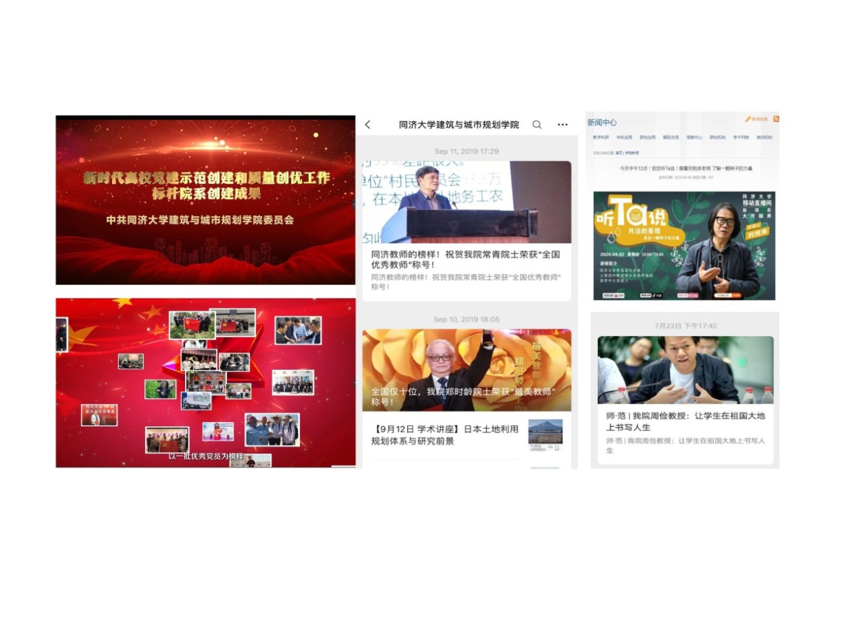 学院党委注重突出建筑学、城乡规划、风景园林3个一级学科专业优势,主动承担社会责任。贯彻落实党的十九大提出的“实施乡村振兴战略”,教师党员投身黄岩美丽乡村建设事业,建设“同济·黄岩党建教育基地”,为振兴乡村贡献“同济智慧”。积极参与上海世博、杨浦滨江等城市公共空间规划建设工作,为城市发展献计献策。积极参与援疆援藏、灾后重建、云龙扶贫、雄安新区和三沙规划等工作,为国家建设和战略发展贡献应有之力。