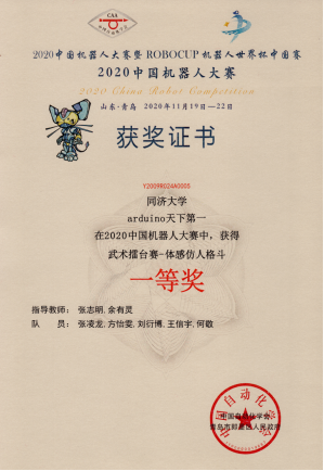 本次大赛共设有18个大项,并下设49个子项,来自包括清华大学、浙江大学、同济大学、山东大学等全国知名高校在内的200所学校的780支队伍报名参赛,报名人数超过3530人。在学校有关部门的大力支持下,电子与信息工程学院选拔学生组成5支队伍,在教师张志明、朱劲和刘润田带队下参赛。其中,由教师张志明、朱劲和余有灵指导,全国大学生智能汽车竞赛实验室成员组成的4支队伍分别参加“武术擂台赛-视觉挑战A组”“武术擂台赛-体感仿人格斗”“助老服务机器人-助老环境与安全服务”“助老服务机器人-助老生活服务”等项目比赛,经过小组赛、淘汰赛等多轮角逐后,获得3项一等奖(含1项亚军)和1项优胜奖;由教师刘润田和徐志宇指导的队伍参加“医疗机器人-骨科手术机器人”项目比赛,成绩优异,获得亚军。