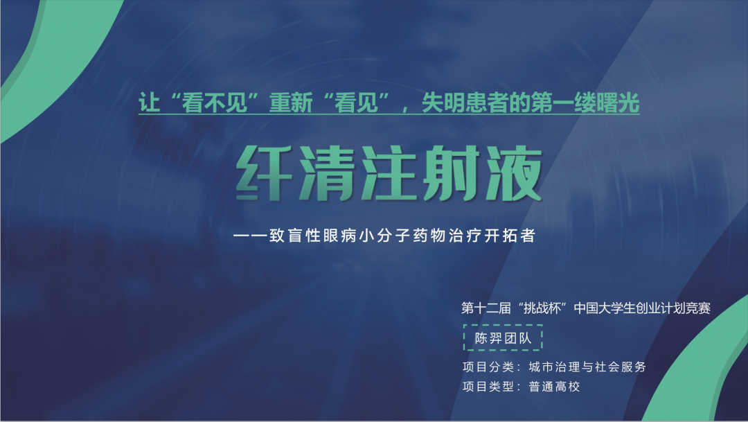 陈羿主持的项目“纤清注射液——致盲性眼病小分子药物开拓者”摘得金奖。纤清注射液是一款完全国产、民族自主的拥有独立知识产权和核心专利技术的新型小分子眼科药物,在治疗以视网膜下纤维化为主要病理机制的致盲性眼病上有突出疗效,该技术在国际上处于领先地位。