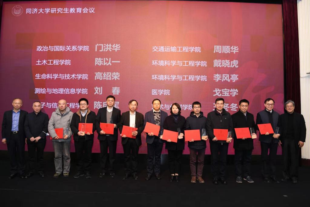 10个卓越研究生导学团队分别为政治与国际关系学院门洪华团队,土木工程学院陈以一团队,生命科学与技术学院高绍荣团队,测绘与地理信息学院刘春团队,电子与信息工程学院陈启军团队,交通运输工程学院周顺华团队,环境科学与工程学院戴晓虎团队、李风亭团队,医学院戈宝学团队,艺术与传媒学院王冬冬团队。