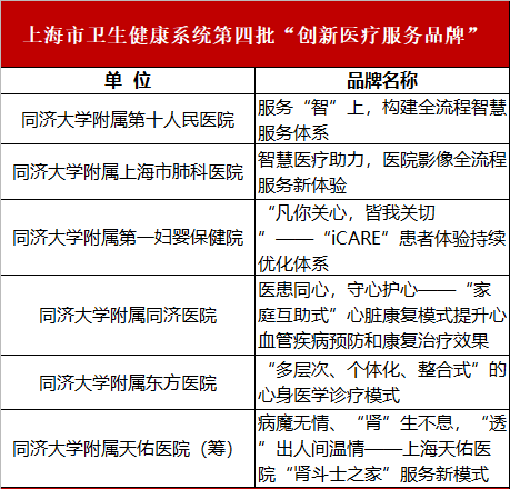 第四批“创新医疗服务品牌”推选活动重点突出“生命至上,人民至上”理念,围绕人民群众看病就医“关心什么、期盼什么”,探索制定方便群众看病就医、提升医疗服务能级的创新型服务,在提升人民群众看病就医获得感上取得实实在在的成效。自启动以来,活动共收到来自全市各级各类医疗机构遴选后申报的品牌项目46个,经综合评议,最终产生了30个品牌。我校附属医院6项目入选。