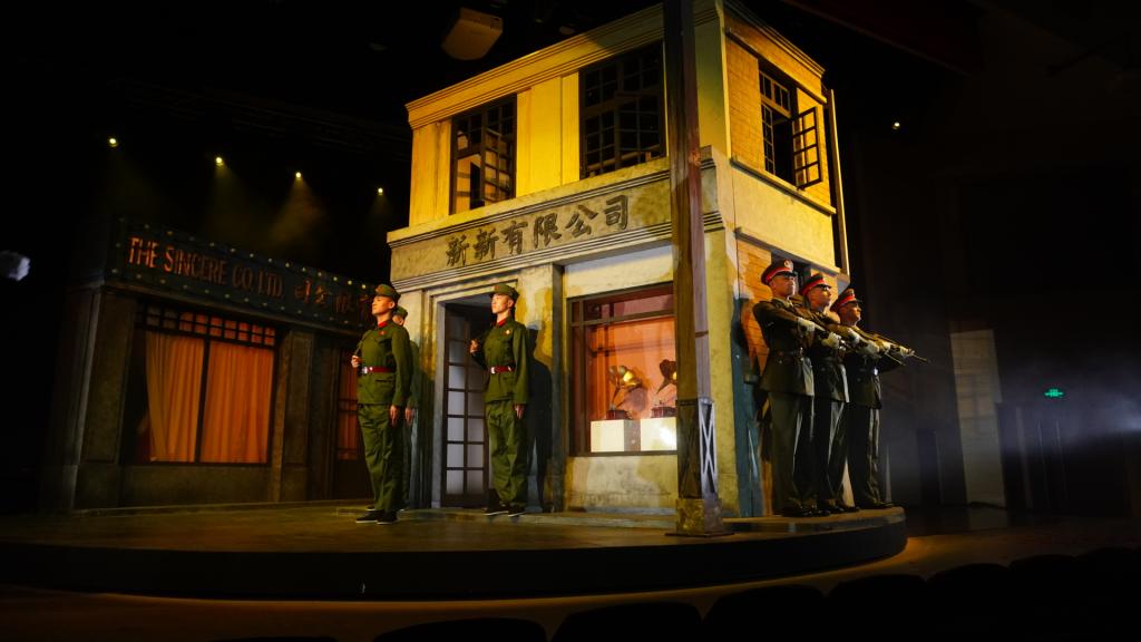 大幕落下,全场观众为塑造了生动人物形象的演员们报以热烈的掌声。此次剧目演绎不仅在内容上作了创新,在原有红色艺术内核基础上编创生动剧情以增强对青年学生的吸引力,并以沪语演绎强化了故事依托的上海“南京路”这一本土场景。值得一提的是,舞台中央还别出心裁地设计了大型旋转装置,以“南京路”不同时期的装饰布置为主体,随之装置变换进行着不同场景切换,极大地增强了场景连贯性和艺术感染力,也喻指先辈志士们的坚定信念和高尚精神穿越历史而来,将得到传承弘扬而历久弥新。