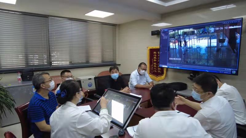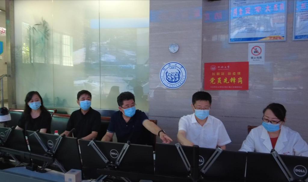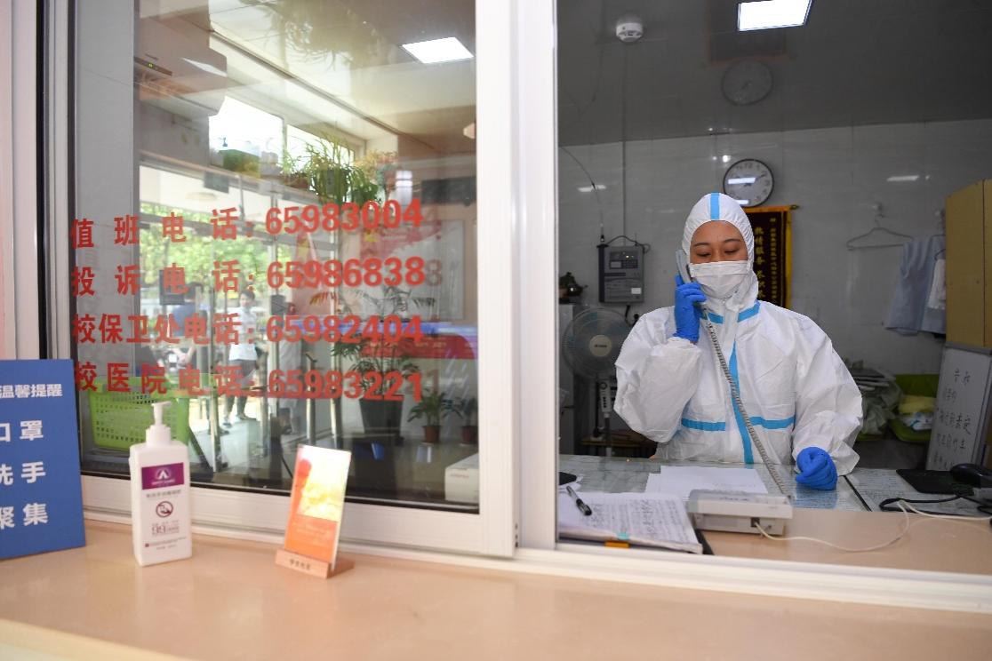 “报告,今天上午校医院接到新华医院来电告知,发现1例新冠病毒核酸检测阳性病例,系我校在校学生,住在四平路校区西南二楼。该生因‘发热咳嗽一天’于8月26日6时前往新华医院发热门诊就诊,9时新冠核酸检测结果为疑似阳性,10时核酸复检结果阳性,确诊。目前新华医院已将该病人隔离治疗。现请求启动我校疫情防控应急方案,请指示。”校医院接报后,演习正式开始。