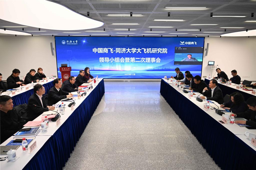 12月15日下午,中国商飞—同济大学大飞机研究院(以下简称“大飞机研究院”)领导小组会暨第二次理事会在同济大学四平路校区召开,交流大飞机研究院工作进展,共同谋划“十五五”创新发展。