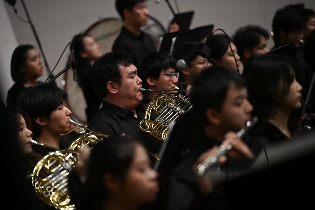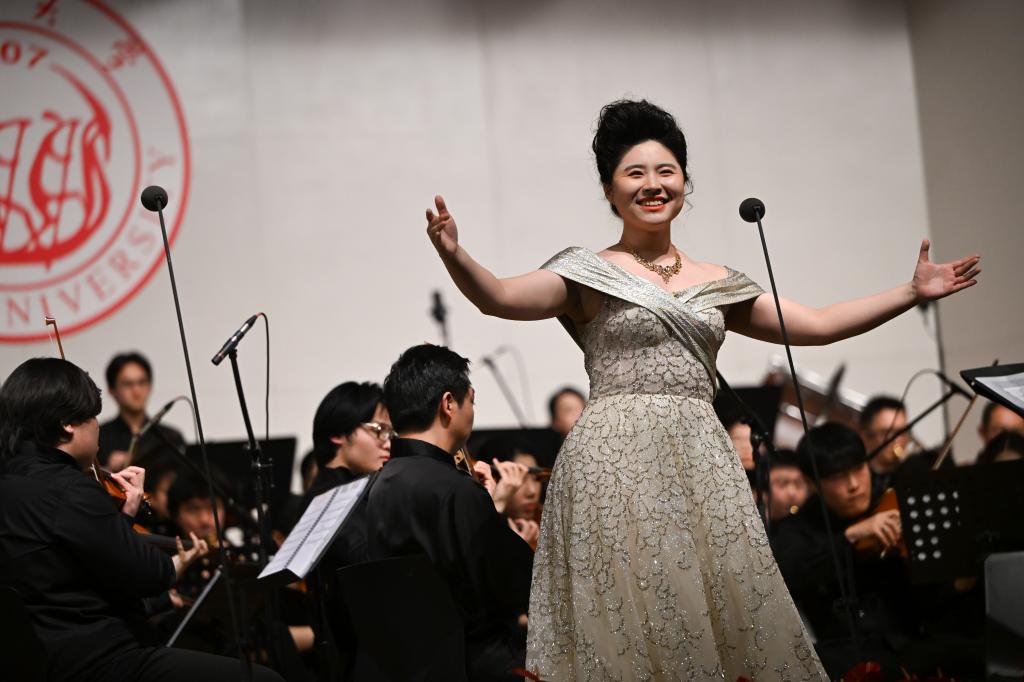 男声独唱京剧《贵妃醉酒》选段,女声独唱《帕米尔,我的家乡多么美》,交响合唱《美好新征程》《保卫黄河》先后唱响,乐传心声,深情款款的歌声,唱出了同济师生对党、对祖国的赤诚,对美好生活的热爱,以及接续奋进“十五五”新征程的壮志豪情。台下观众凝神屏息静听,陶醉其中,热烈的掌声一次次响起。