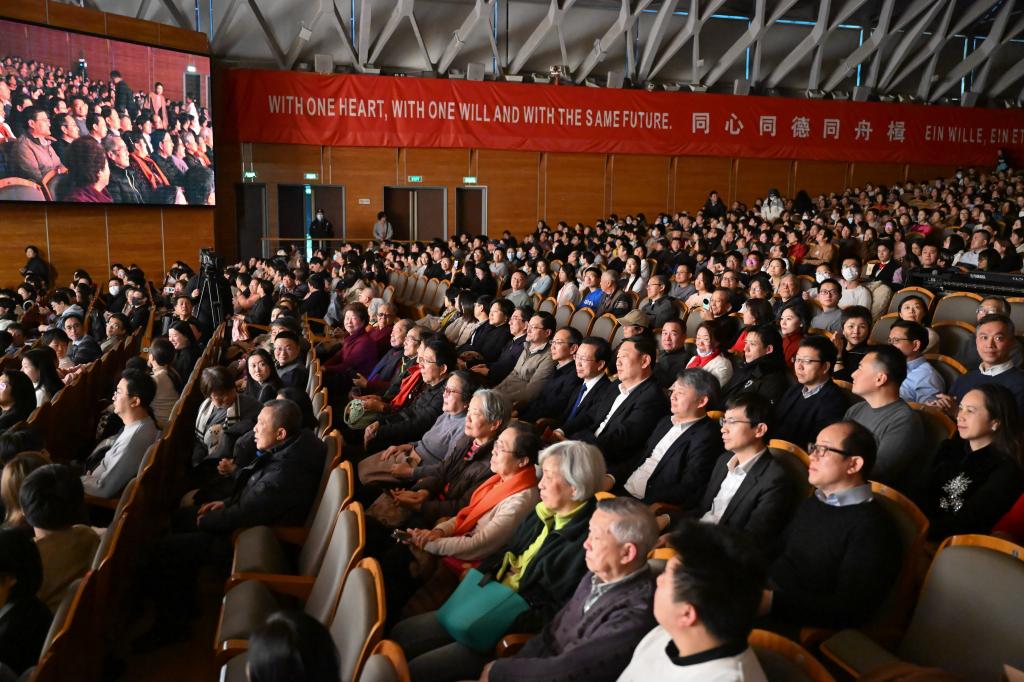 校党委书记、中国工程院院士郑庆华,校长、中国科学院院士杨金龙,校党委常务副书记朱小杰,杨浦区委常委、统战部部长董鑫旺,副校长石振明,校党委副书记刘润、曹静,校务委员会副主任、校党委原副书记吴广明等出席,与学校师生一道共赏美妙音乐,共迎即将到来的新年。
