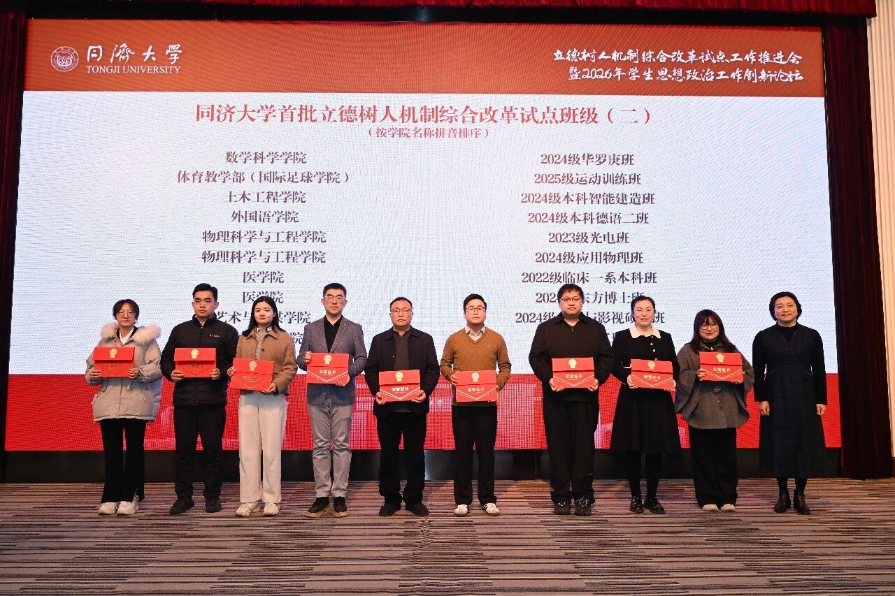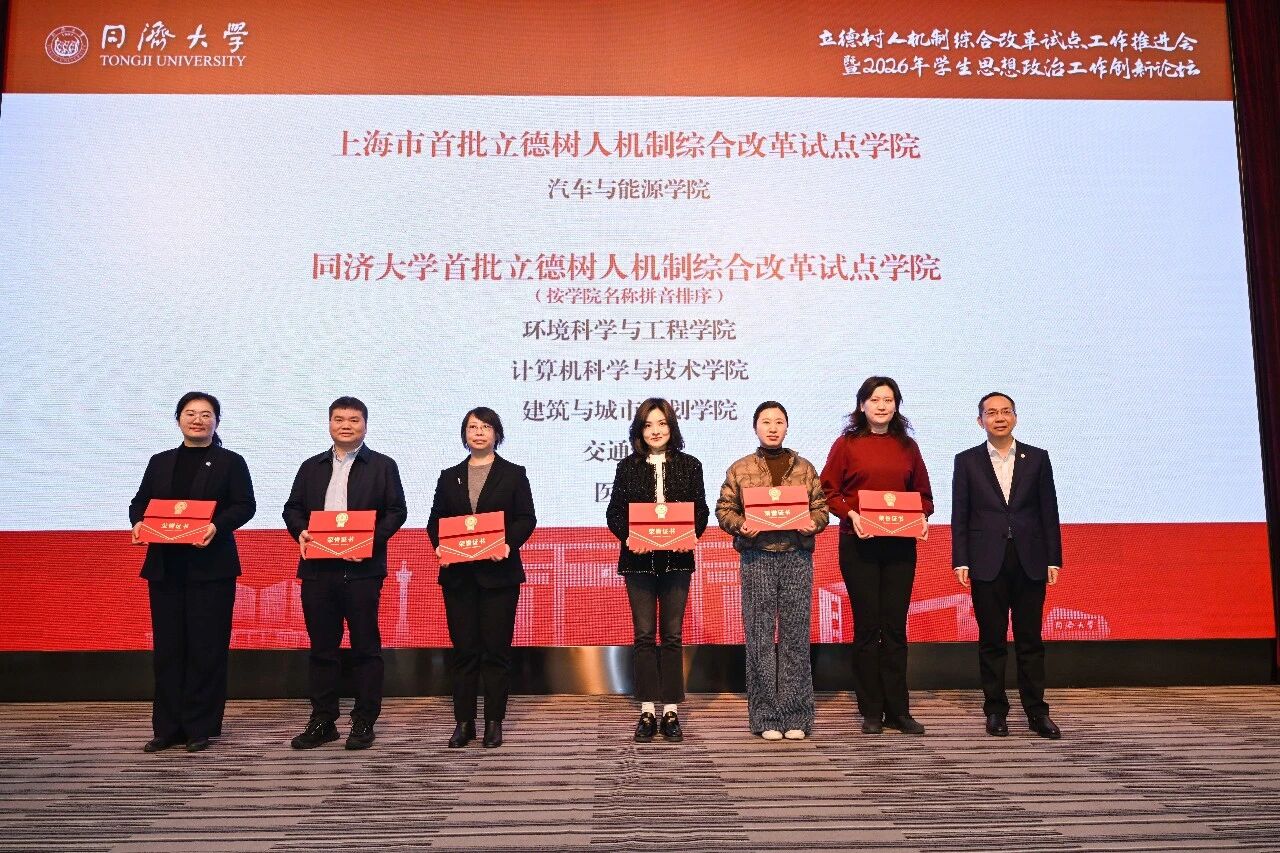 思政铸魂引领育人方向,机制创新夯实改革根基。1月15日,同济大学立德树人机制综合改革试点工作推进会暨2026年学生思想政治工作创新论坛在四平路校区举行。校党委书记、中国工程院院士郑庆华,校长、中国科学院院士杨金龙,副校长石振明,校党委副书记刘润、曹静出席。